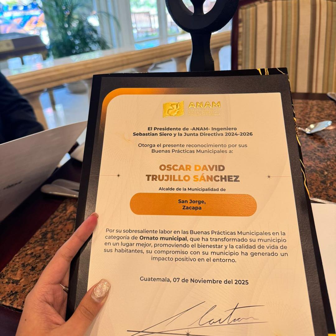 La Estatuilla fue otorgada por la Asociación Nacional de Municipalidades de la República de Guatemala (ANAM).