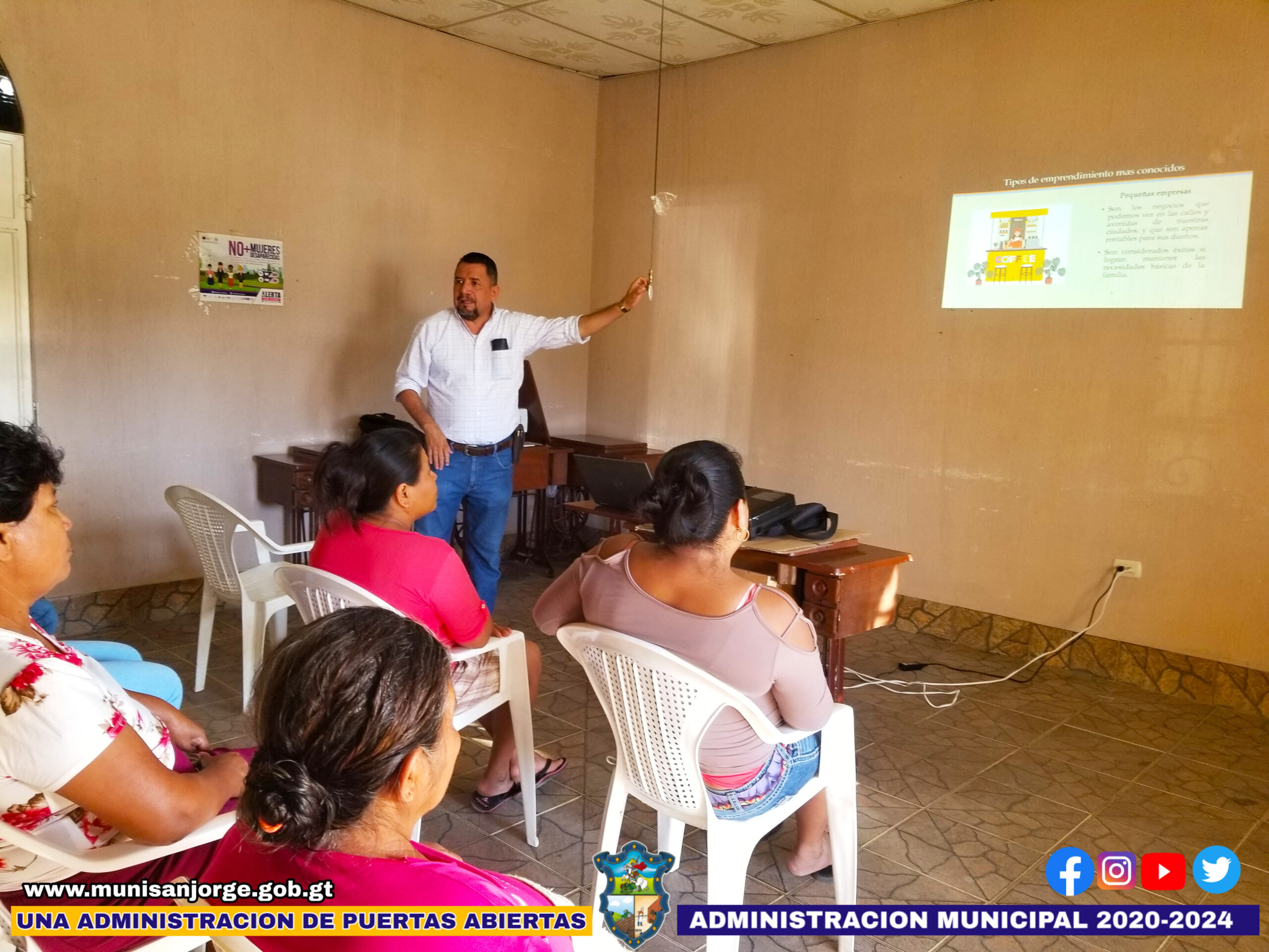 Con el tema «El emprendimiento y el emprendedor», la Municipalidad de San Jorge organizó e impartió una capacitación a más de 15 mujeres emprendedoras sobre estas áreas de desarrollo microempresarial, con el objetivo de que estos conocimientos les ayuden a mejorar e innovar sus estrategias y actividades productivas.